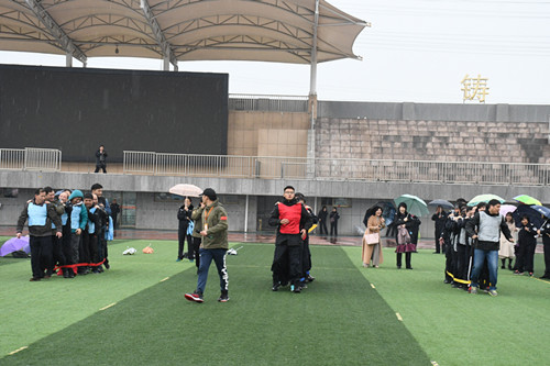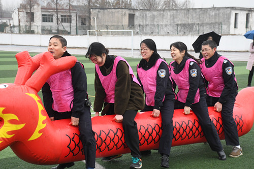 運動會共設動力圈、巨人腳步、旱地龍舟、射箭游戲、碰碰球、鼓動人心、迷你高爾夫等,這些項目集趣味性、娛樂性、協作性和競爭性于一身,既是力量的角逐,又是智慧的較量;既是個人體育水平的展示,又是對團隊協作能力的檢驗。學院11個分工會分別派出了10人的團隊,參加其中兩個集體項目的角逐,大家冒著小雨,奮力拼搏,你追我趕,“加油”聲、歡呼聲響成一片,呈現出一派歡樂、祥和的氣象。