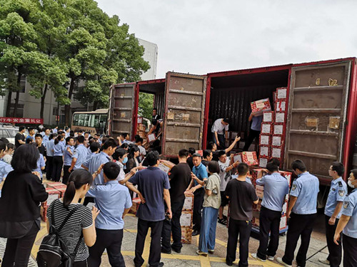 6月29日和30日下午,滿載新疆和田地區皮山縣農特產品的貨掛車抵達我院。在院工會和各基層工會的大力支持和配合下,經過緊張有序的下貨、分發,順利完成了助銷該地農特產品工作。