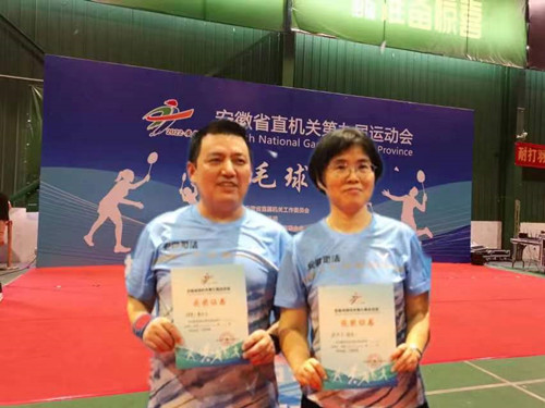 在開局發接發落后2分的情況下,我方隊員迅速調整心態,打到11:7領先,局間休息時,有多年大賽經驗的教練員黃擁軍現場指導:“不要輕敵,能打進決賽的都是有絕對的實力的選手,他們會反撲的,我們要改變戰術……”果然如教練所言,在比分你追我趕的跌宕起伏中,我方隊員咬緊牙關,密切配合,一分一分地爭取,終于以21:16順利拿下第一局。隨后,劉忠平、錢英配合默契、氣勢如虹,以21:6大比分拿下第二局,獲得企事業組乙組羽毛球項目混雙冠軍,取得了安徽省司法廳企事業組羽毛球隊歷年來最好成績。