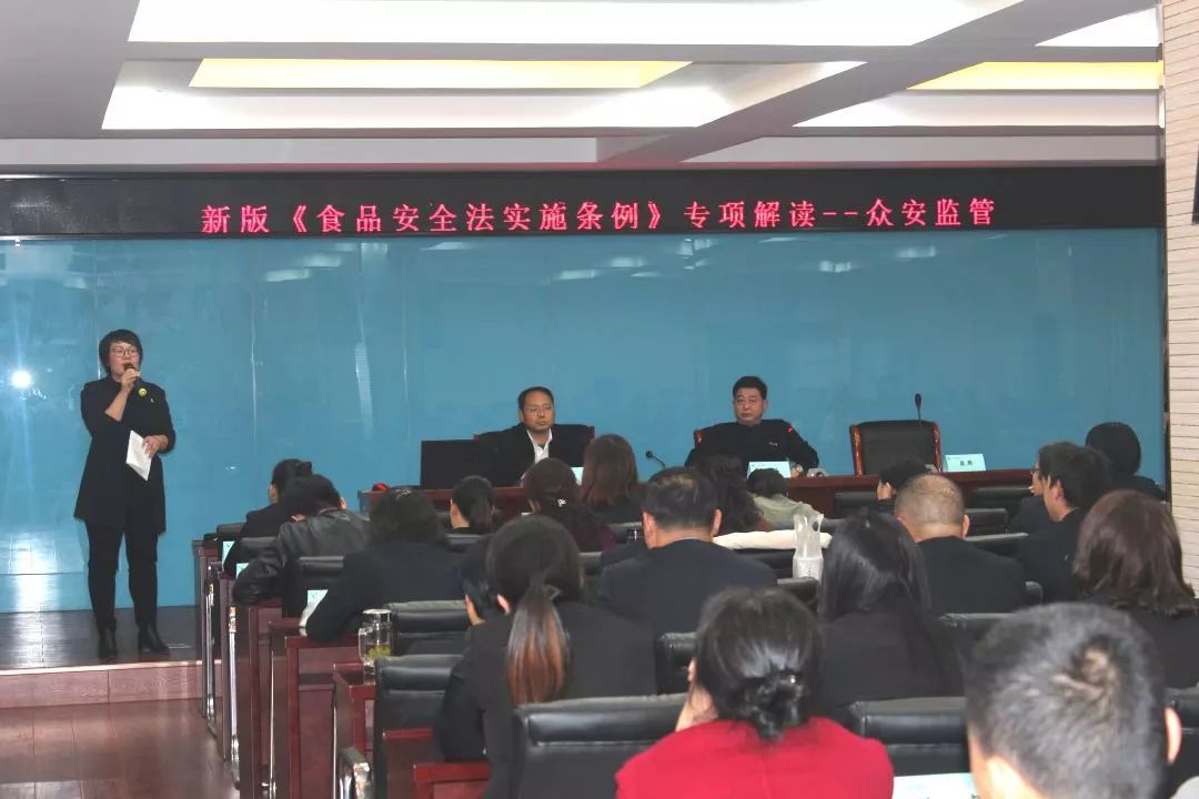 新修訂的《中華人民共和國食品安全法實施條例》將于12月1日正式施行(以下簡稱《條例》),作為“史上最嚴”的《食品安全法》配套法規,必將對食品行業產生深遠影響。為幫助學院食堂餐飲經營企業管理人員準確把握《條例》內涵要求,2019年11月23日下午,學院后勤服務集團和安徽眾安第三方食品監管服務有限公司在學院圖書館樓學術報告廳共同組織舉辦《條例》解讀培訓會。學院餐飲管理人員、眾安第三方食品監管全體從業人員、學院食堂餐飲經營企業管理人員、學生伙委會負責人參加培訓。安徽農業大學餐飲管理相關負責人和安徽大佳一、安徽李府、安徽中快、合肥長快、天鮮配、萬友禾禾等近30家知名餐飲公司得知我院舉辦培訓班,主動申請組織管理人員參與了培訓。