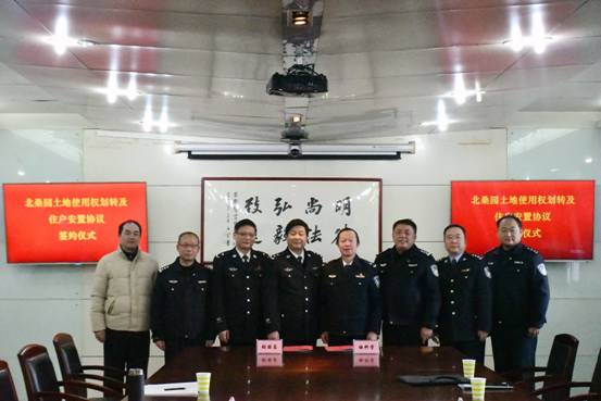 2020年12月22日下午,我院與安徽省蜀山監獄于學院西區行政樓3樓會議室就蜀山監獄北桑園土地使用權劃轉及住戶安置項目正式簽訂了協議。學院黨委書記張國昌、副院長鄧生苗、蜀山監獄黨委書記梅科學分別攜本單位相關部門負責人出席簽約儀式。