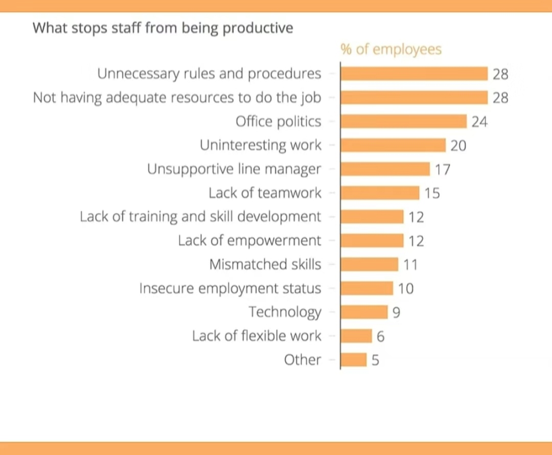 Task Here is a chart of an investigation. Be prepared to discuss this chart and your view on What stops staff from being productive.