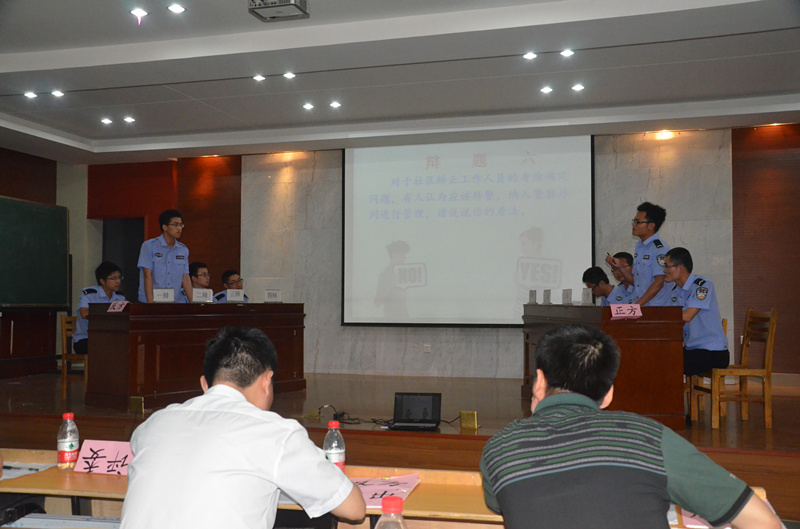 此次課程考核改變了以往單純書面形式的考核方法,轉變為引導學生敢于打破過于狹窄的課程定位,注重學生的職業素養和實踐能力的考核,更好地適應了政法干警試點專業“教學練戰一體化”的要求。該課程授課老師——合肥市司法局基層處張艷清處長圍繞司法行政工作的特點和基層司法所工作模式以及目前面臨的難題精心準備了“對社區矯正人員的管理,是應該以增強在刑意識為主,還是應該淡化刑罰色彩,體現人性管理“等十一組辯題,每組辯題分為正反方,法律事務試點專業的88名同學組成22組,抽簽決定辯題和正反方。