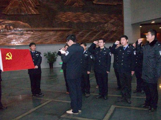 參觀開始前,在博物院舉行了莊嚴(yán)的新黨員入黨宣誓儀式。面對著鮮紅的黨旗,新入黨學(xué)生在任翔同學(xué)的領(lǐng)誓下,鄭重地舉起右拳莊嚴(yán)宣誓,隨時準(zhǔn)備為黨和人民犧牲一切,永不叛黨。