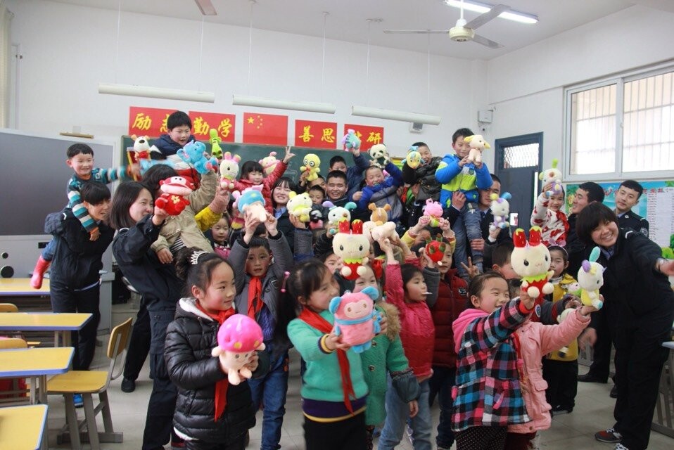 演出結束后,警院的同學給每位小朋友發了本子、鉛筆和玩具娃娃。最后,大家大手拉著小手一起拍了合影,然后手拉著手排隊走出了校門,把小朋友們安全地送到他們的父母身邊。之后,警院學子們又回到教室把地面打掃干凈,桌椅擺放整齊,整個活動圓滿結束。