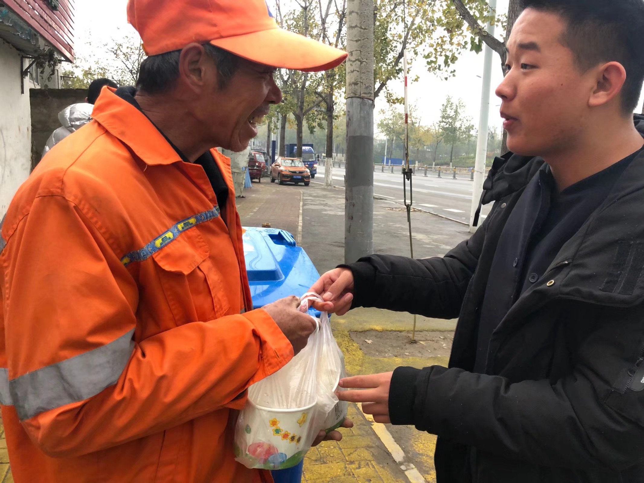 而當每一份餃子在同學們的手上傳遞給了保安大叔,環衛工人宿管阿姨的時候,每個人的臉上寫滿了快樂。