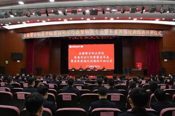12月1日上午,學院首屆司法行政警察類專業警務素養強化訓練開班儀式在學術報告廳舉行。院黨委書記張國昌,院黨委副書記、院長操申斌,院黨委副書記胡愛國,院黨委委員、副院長周善來,院黨委委員、紀委書記方衛勝出席會議。組宣處、人事處、教務處、學生處、警察系和信息管理系主要負責人,首屆司法行政警察類五個專業的全體學生和班級輔導員以及專業教師參加開班儀式。開班儀式由院黨委副書記胡愛國主持。