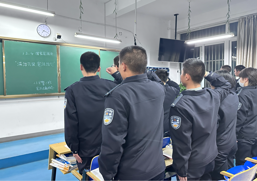為了弘揚憲法至上,法律面前人人平等的法治理念,營造遵法學法的濃厚氛圍,提高學生守法意識,警察系通過專題升國旗儀式活動、學習憲法宣傳暨簽名倡議活動等,在師生中開展了“弘揚憲法精神,推進依法治校”國家憲法日宣傳。23級司警一班于12月4日開展開展學習憲法主題班會宣傳活動。該會議由團支書陸瑜主持,23級司警一班全體成員參與。
