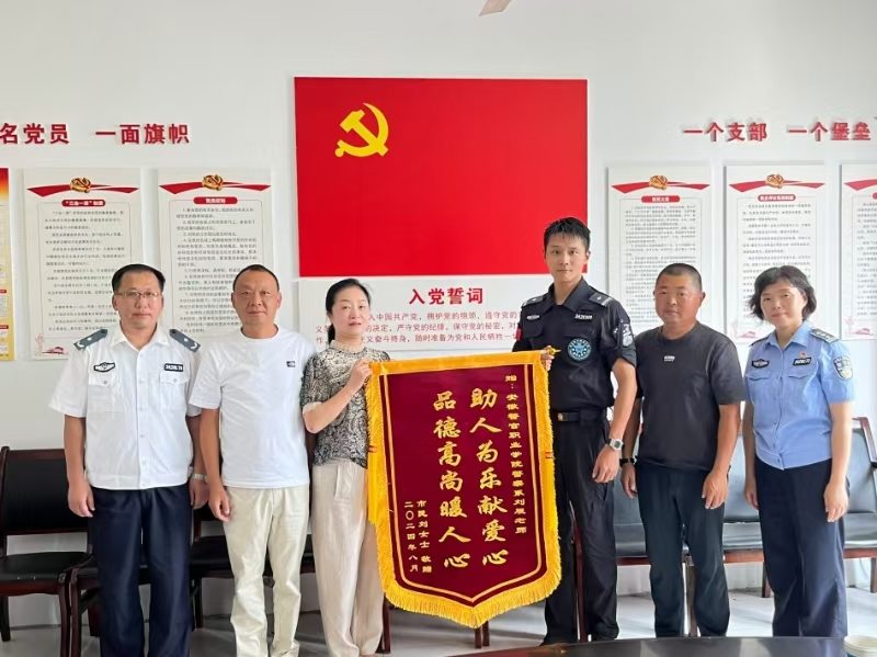 9月9日上午,在第40個教師節前夕,合肥市民劉女士及其家人在炎炎烈日下,滿懷感激之情專程來到學院,要給我系劉展老師贈送一面錦旗,盛贊其“助人為樂獻愛心 品德高尚暖人心”,以此表達對劉展老師英勇救人行為的深深敬意和由衷感謝。警察系主任姚峰、系黨總支書記宋志潔接待了到訪者。