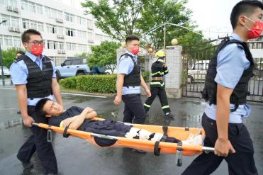 本次活動由警察系第一黨支部負責協調組織。為確保演練活動順利舉行,學生科黨員教師事先詳細制定了工作方案,召開了相關會議,組織各班級認真學習方案,并針對演練路線、安全事項等進行了提前布置。哨聲信號吹響,現場疏散指揮人員迅速就位,全體學生按照各樓層疏散路線要求,快速、有序撤離至指定安全地點。各班立即清點人數,及時向總指揮匯報,整個疏散演練過程緊張而有序。