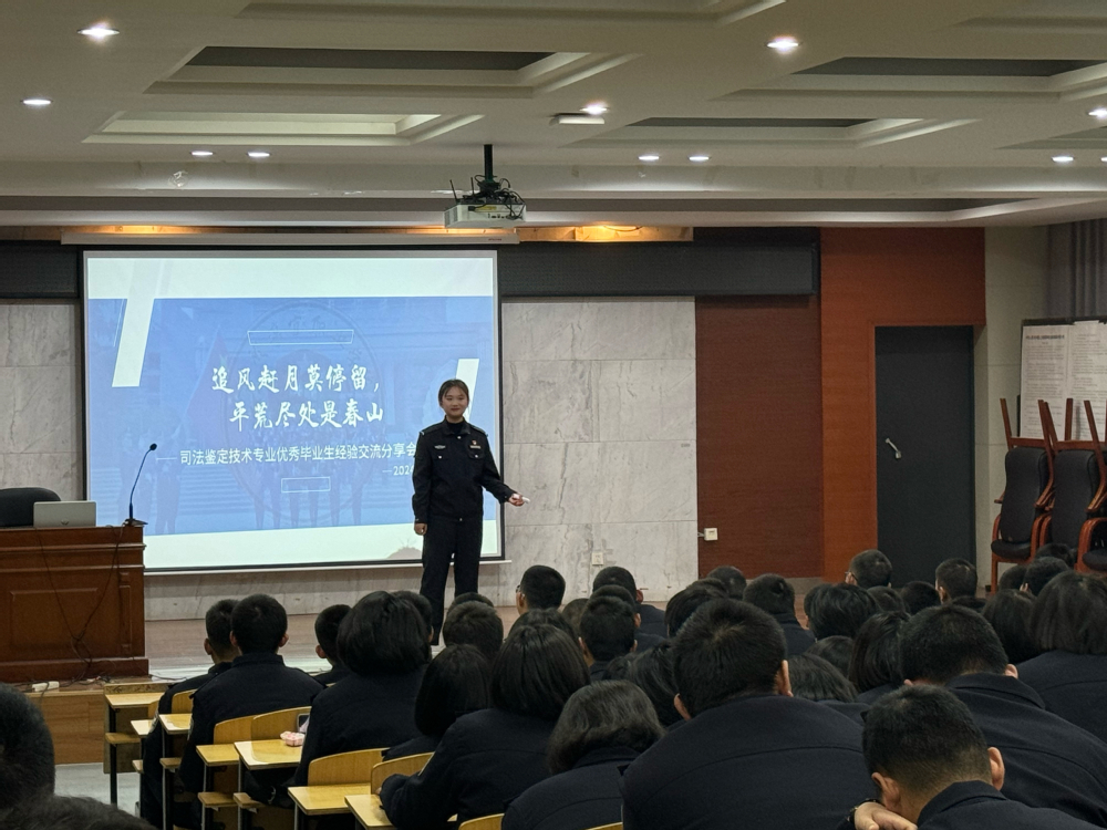 12月11日下午,警察系司法鑒定技術專業在一號教學樓模擬法庭舉辦優秀畢業生經驗分享交流會。此次活動邀請了20級司法鑒定技術專業優秀畢業生吳珊珊,為司法鑒定技術專業23級、24級學生分享有關學習和生活方面的寶貴經驗,幫助同學們明確學習目標,做好職業規劃。