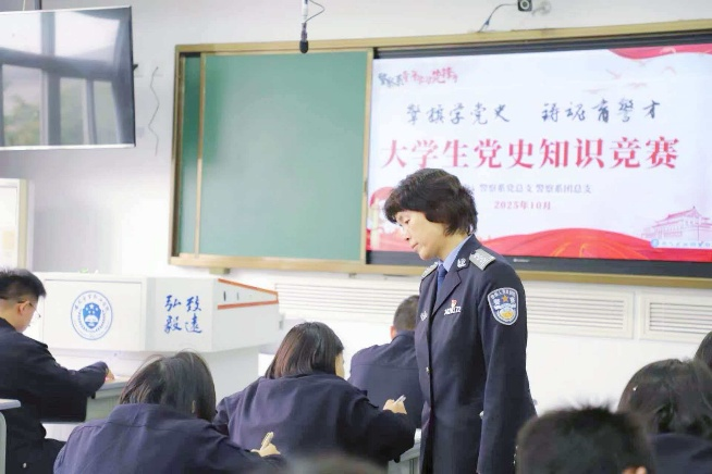 10月31日中午,警察系首屆大學生黨史知識競賽圓滿落幕。本次競賽以“擎旗學黨史、鑄魂育警才”為主題,采用閉卷測試形式,全系設置6個考場,共計兩百余名學生報名參賽,以考促學檢驗黨史理論學習成效。