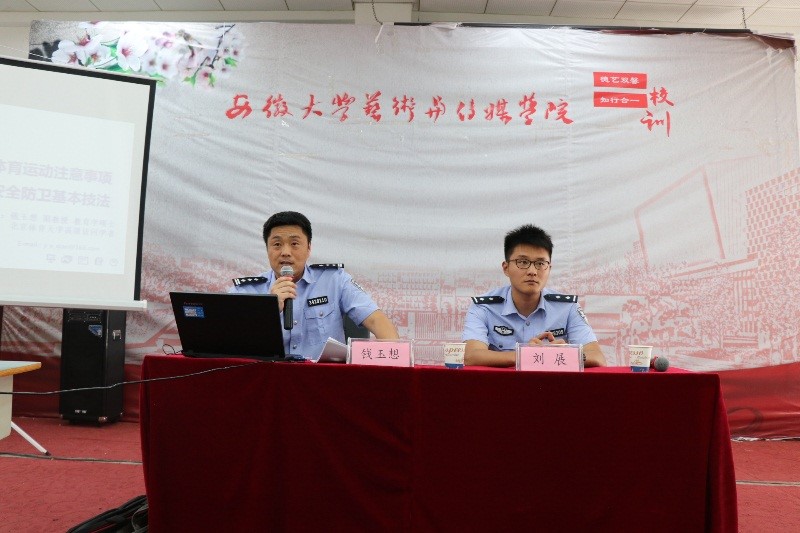 6月13日下午,我院教師錢玉想、劉展受邀到安徽大學(xué)藝術(shù)與傳媒學(xué)院,為新聞播音系學(xué)生做了“體育運(yùn)動(dòng)注意事項(xiàng)與安全防衛(wèi)基本技法”專題知識(shí)講座。