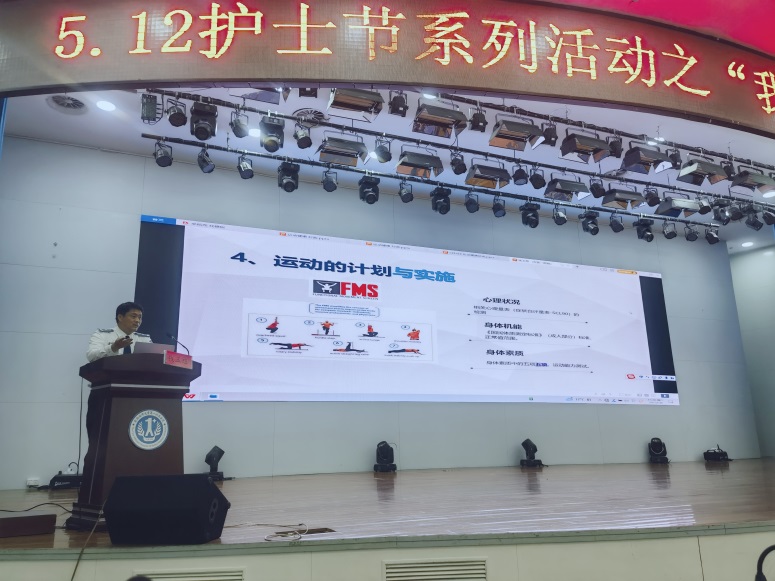 錢玉想教授針對護士群體,從運動與健康關聯、運動的類型、運動的強度判定、運動計劃與實施、科學運動的原則和運動時的注意事項六個方面進行了普適性、補償式的知識傳授。
