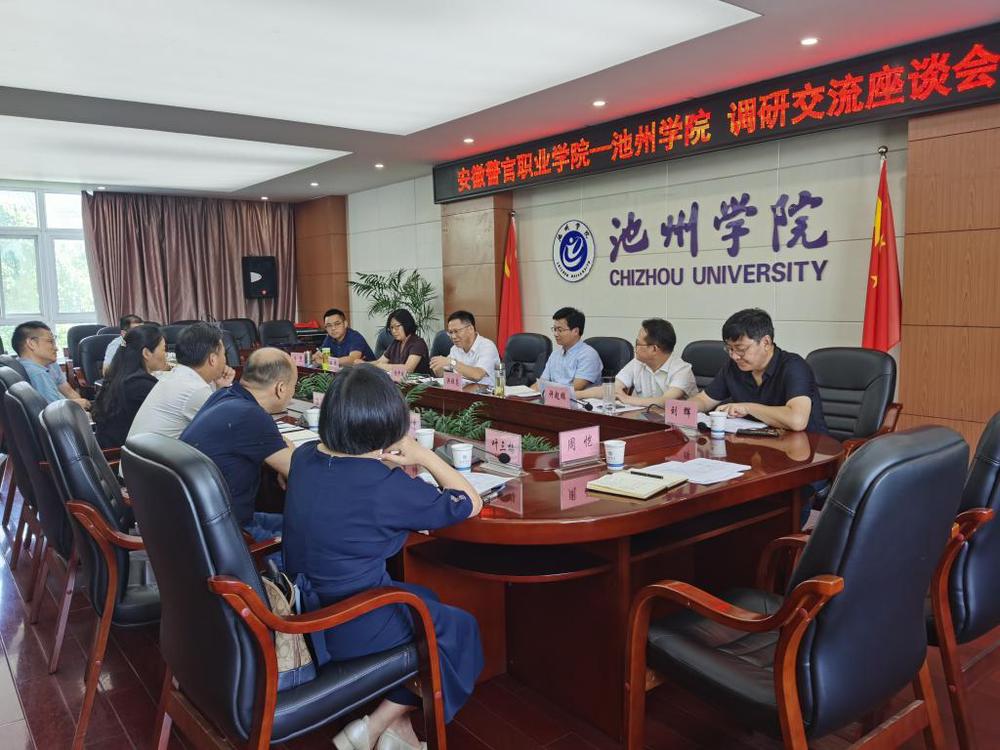 為推進池州學院與安徽警官職業學院專升本聯合培養工作,建立兩校交流合作機制,學習池州學院先進的教育教學工作理念和管理經驗,2022年8月3日,院黨委副書記、院長操申斌赴池州學院參加池州學院與安徽警官職業學院專升本聯合培養工作交流調研座談會。