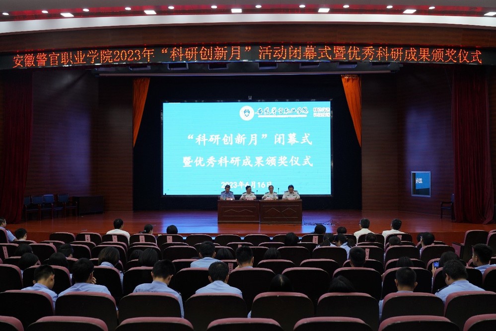 6月16日,安徽警官職業(yè)學(xué)院“科研創(chuàng)新月”活動閉幕式暨優(yōu)秀科研成果頒獎儀式在學(xué)術(shù)報(bào)告廳隆重舉行。活動分為科研誠信專題講座、優(yōu)秀科研成果頒獎儀式和“科研創(chuàng)新月”閉幕式三個環(huán)節(jié),由院黨委委員、副院長沈友耀主持。院黨委副書記、院長操申斌,院黨委委員、副院長周善來,院黨委委員、紀(jì)委書記方衛(wèi)勝出席,各系(院、部)正副主任、各系(院、部)辦公室負(fù)責(zé)人、各教研室負(fù)責(zé)人、教師和學(xué)生代表共計(jì)300余人參加活動。