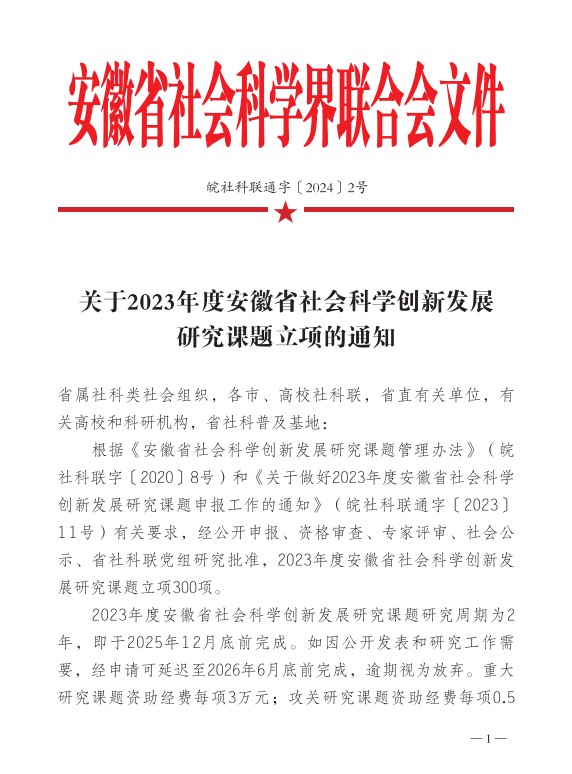 圖一:2023年度安徽省社會科學(xué)創(chuàng)新發(fā)展研究課題立項的通知