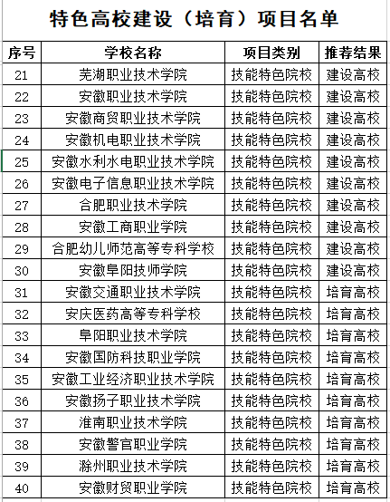 學院黨委高度重視本次項目申報工作,組建專班集中封閉,反復研討、打磨、凝練,齊心協力、共同完成申報工作。此次成功入選安徽省技能特色高校(培育)項目名單,是學院繼入選安徽省“雙高計劃”學校建設單位后的又一重大發展機遇,是學院“十四五”發展關鍵期的又一新突破,開啟學院高質量發展的新征程。