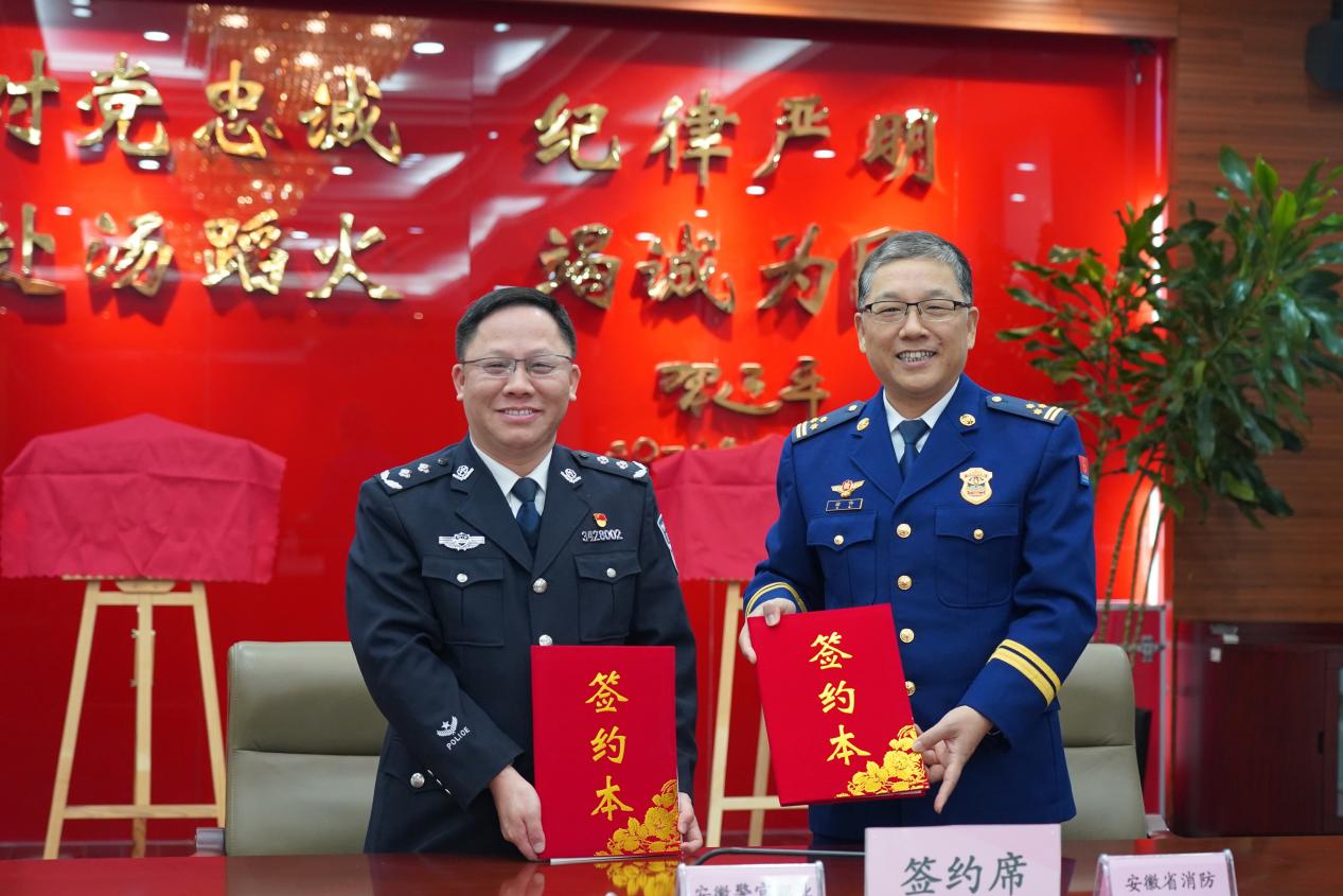 儀式中,雙方簽署合作框架協(xié)議,并共同為“安徽警官職業(yè)學(xué)院實(shí)習(xí)實(shí)訓(xùn)基地”和“安徽消防救援應(yīng)用技術(shù)產(chǎn)業(yè)學(xué)院”揭牌。