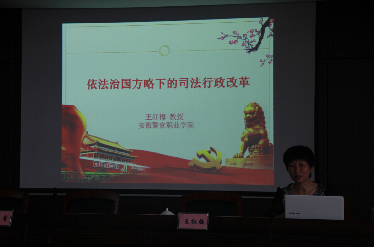 她從準確認識依法治國的三大關系方面,闡述了黨的領導與社會主義法治的關系、依法治國與堅持依憲治國的關系、完善國家治理體系中法治與德治的關系;從轉型期司法行政工作面臨的現實問題,分析在依法治國方略語境下的司法行政工作改革的必要性和重要性,就司法行政工作如何推進法治政府建設、促進社會公平正義、增強全民法治觀念、維護社會和諧穩定提出了全面深化司法行政工作改革的舉措。講座受到與會者的好評。