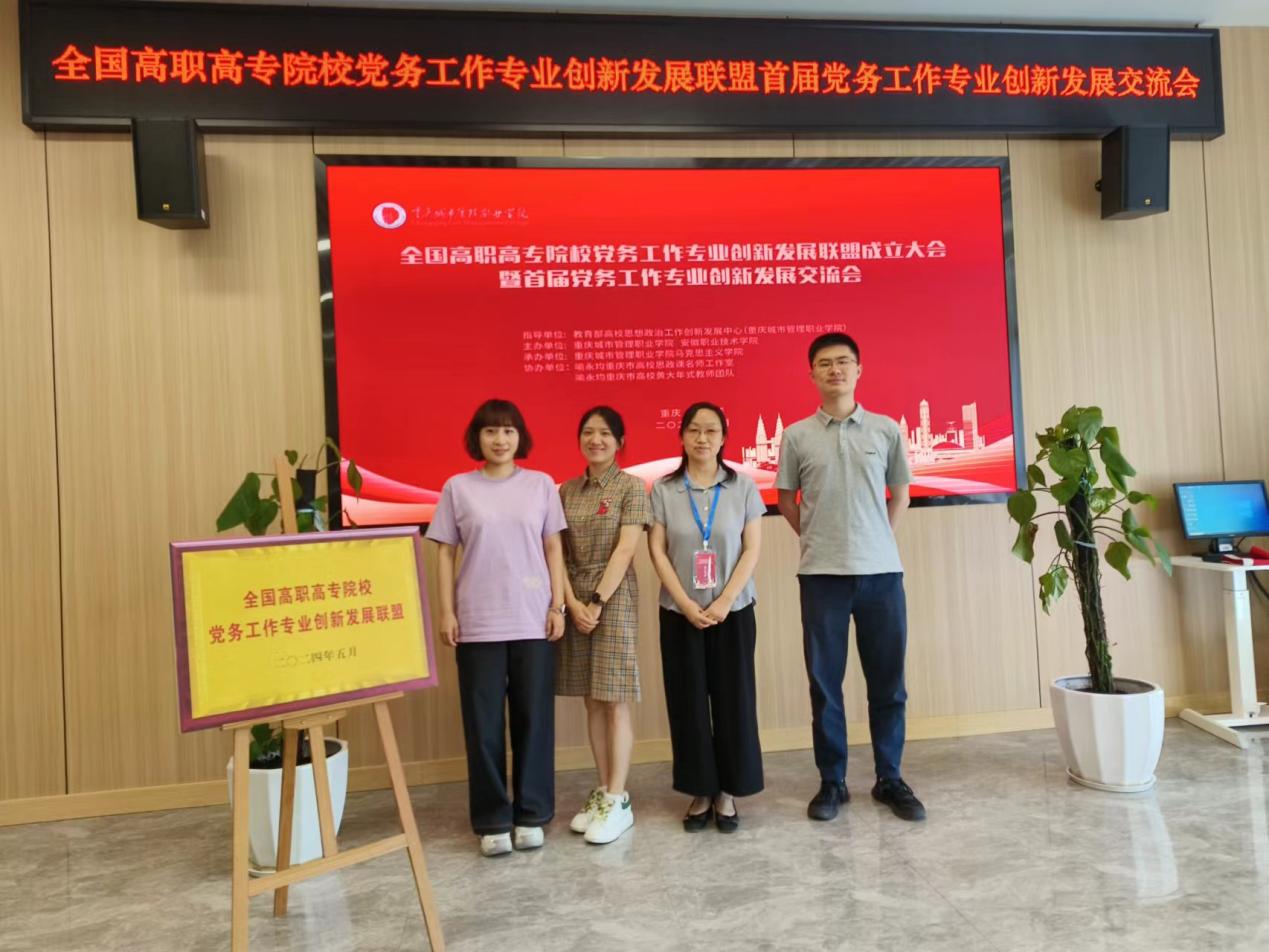 5月23至25日,全國(guó)高職高專(zhuān)院校黨務(wù)工作專(zhuān)業(yè)創(chuàng)新發(fā)展聯(lián)盟成立大會(huì)暨首屆黨務(wù)工作專(zhuān)業(yè)創(chuàng)新發(fā)展交流會(huì)在重慶城市管理職業(yè)學(xué)院舉行。馬克思主義學(xué)院負(fù)責(zé)人王蕓、黨務(wù)工作專(zhuān)業(yè)帶頭人方玲燕和黨務(wù)工作專(zhuān)業(yè)課教師張子姮、劉祎程應(yīng)邀參加本次會(huì)議。