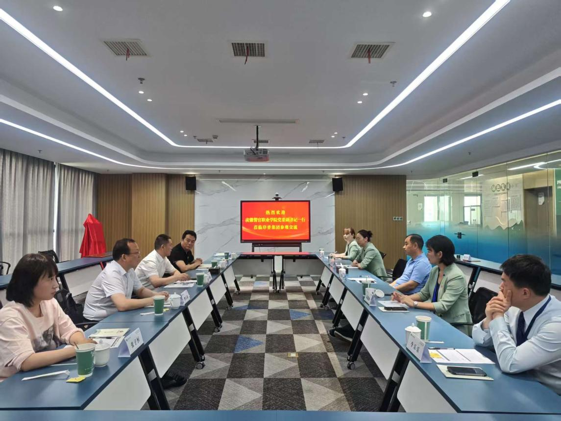 在安徽靜安投資集團,集團黨委書記孫昌平介紹了企業的發展歷程、產業布局和人才需求,劉紹云介紹了學院相關專業與人才培養特色,雙方圍繞畢業生實習就業、校企合作等方面進行深入交流,就未來開展進一步的深入合作達成了共識。