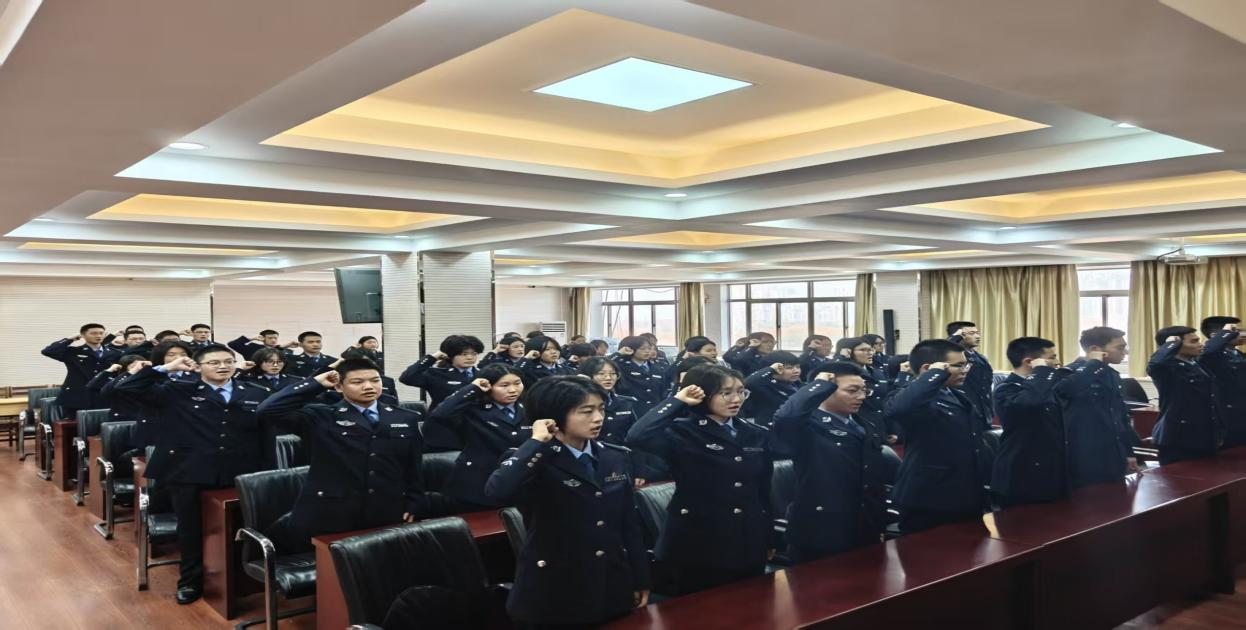 集體宣誓是授銜儀式的核心環節。全體授銜學生整理著裝,全體起立,面向警旗莊嚴列隊。在領誓人的帶領下,以洪亮堅定的聲音重溫《人民警察誓詞》:“對黨忠誠、服務人民、執法公正、紀律嚴明”。鏗鏘有力的誓言不僅是新生對職業信念的莊嚴承諾,更展現出他們踐行初心使命、守護社會平安的堅定決心,讓在場人員深刻感受到警校新生的昂揚斗志與崇高追求。