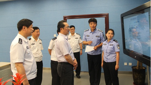 6月5日上午,省司法廳黨委書記、廳長洪禹候借考核考核學院落實黨風廉政建設“兩個責任”之際,深入教學一線看望慰問教職工,實地考察了學院數字化教學視聽中心。