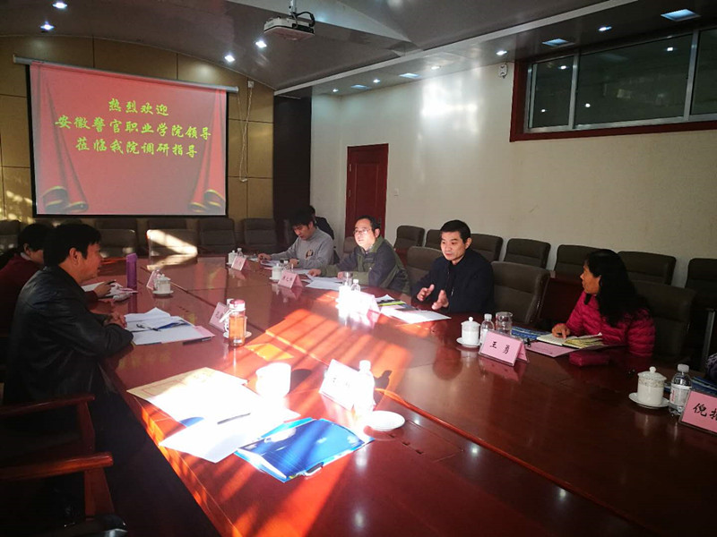 考察組一行受到了山東司法警官職業(yè)學院的熱情接待。座談會上,副院長孔國荃介紹了考察組一行的來意,就學院建設發(fā)展情況等方面與山東司法警官職業(yè)學院副院長于連濤進行了深入交流。同時聽取了山東司法警官職業(yè)學院培訓處陳之帥處長關于該院培訓工作、信息化建設、自學考試等方面的情況介紹,隨后就如何提升培訓工作質(zhì)量,增強學院核心競爭力展開研討。雙方均表示在以后的工作中要加強合作交流,促進共同發(fā)展。