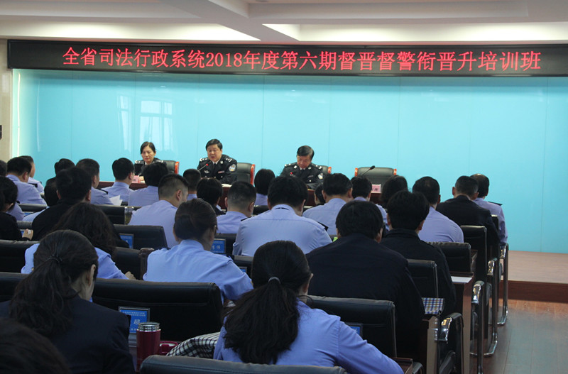 4月17日上午,全省司法行政系統2018年度第六期人民警察警銜晉升(督晉督)培訓班在我院舉辦,來自全省30個監獄戒毒單位115名民警參加了開班式。院黨委書記張國昌出席開班式并講話,副院長、紀委書記孔國荃主持開班式,培訓部相關負責同志參會。