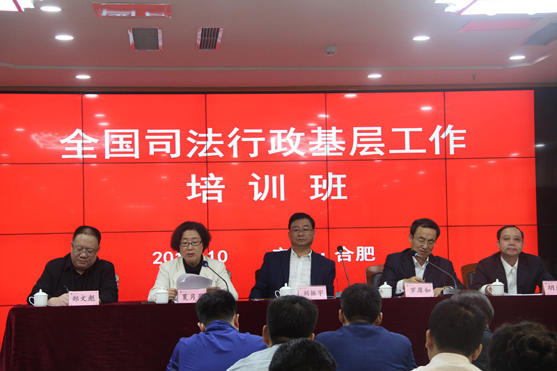 2018年10月21日——26日,司法部將全國司法行政基層工作培訓班安排在我院舉辦。司法部副部長劉振宇出席開班式并作“新時代新要求新作為,奮力開創司法行政基層工作新局面”專題講座;司法部人民參與和促進法治局局長羅厚如主持開班式;安徽省司法廳副廳長夏月星出席開班式并致辭;副局長鄭文彪、院長胡來龍出席開班式。全國各?。▍^、市)司法廳(局)基層處長、安置幫扶工作處長、負責人民陪審員選任工作的處室負責人和負責人民監督員選任管理工作的處室負責人、省會城市和副省級城市司法局基層處長,共120人參加培訓。