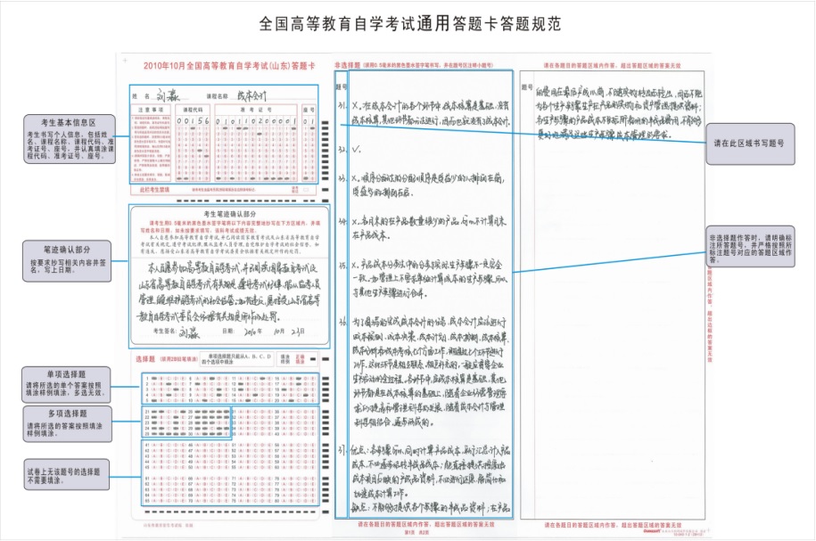 安徽省高等教育自學考試均采用答題卡作答形式。考生注意在答題卡指定的橫線上和書寫方框內(nèi)填寫個人信息。每個書寫方框只能填寫一個阿拉伯數(shù)字。并保持答題卡卷面整潔,不得折疊、破損、污染,不能在非填涂區(qū)域亂寫亂畫。
