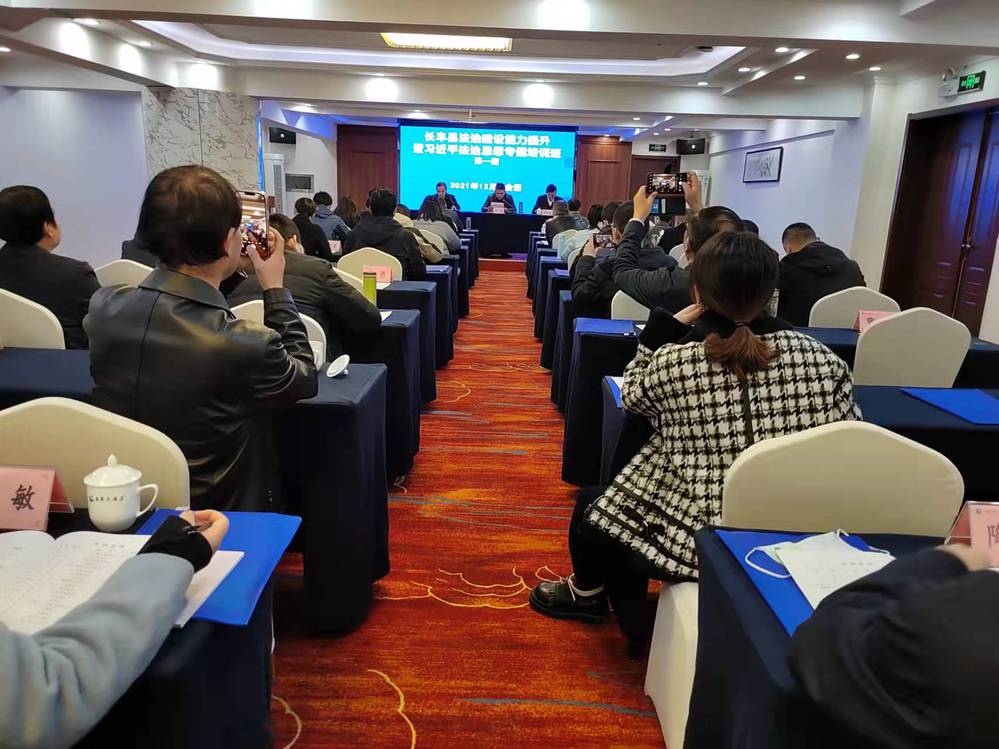 12月5日至10日,長豐縣司法局在我院培訓基地舉辦長豐縣法治建設(法治政府、法制宣傳、法治責任落實)能力提升培訓班和習近平法治思想專題培訓班。長豐縣司法局局長王林、副局長劉建平分別出席培訓會議,副院長鄧生苗出席開班儀式并作動員講話。各鄉鎮、街道、縣直各單位法治建設分管負責同志共計87人參加培訓。