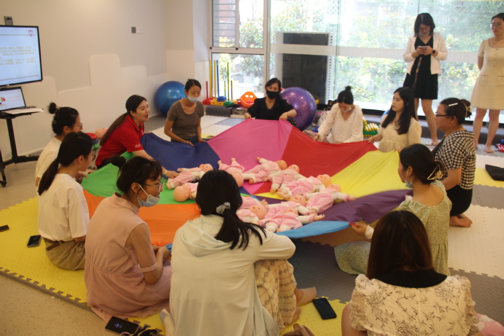 參訓(xùn)學(xué)員先后赴合肥巨石動力少兒體適能訓(xùn)練館學(xué)習(xí),了解少兒體適能訓(xùn)練的方法與實(shí)際操作,并前往皖嫂家政總部開展實(shí)踐教學(xué),通過“左手抓右手放”的小游戲引入了“早教親子游戲互動有助于孩子學(xué)習(xí)”主題,詳細(xì)了解了游戲互動的重要意義和原則,并且通過“彩虹傘”和“龜殼爬”等游戲示范強(qiáng)化親子游戲?qū)τ诖龠M(jìn)寶寶視、聽、嗅、觸、關(guān)節(jié)、肌肉和前庭等多種感覺統(tǒng)合發(fā)展的有利影響。理論與實(shí)踐相結(jié)合的學(xué)習(xí)模式,讓參訓(xùn)學(xué)員受益匪淺。(培訓(xùn)部 馬何平)