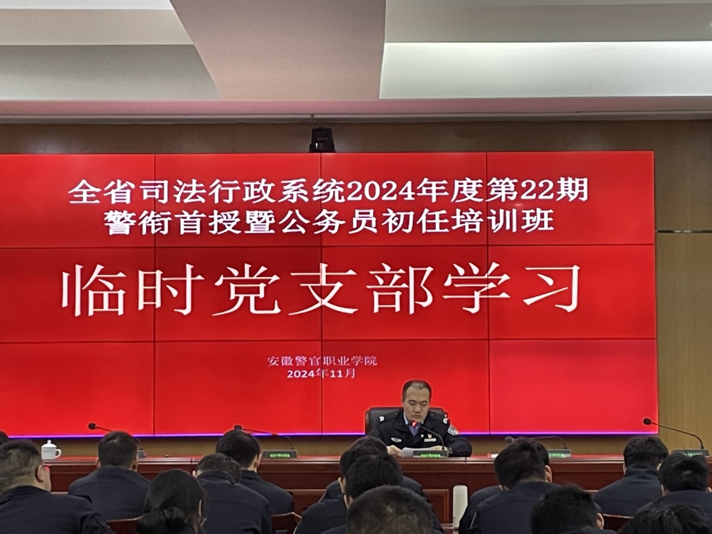 為進一步加強培訓(xùn)班管理,充分發(fā)揮黨組織戰(zhàn)斗堡壘作用和黨員模范先鋒作用,11月19日晚,第22期警銜首授暨公務(wù)員初任培訓(xùn)班成立臨時黨支部,并組織全體黨員開展了一次主題鮮明的學(xué)習(xí)活動。