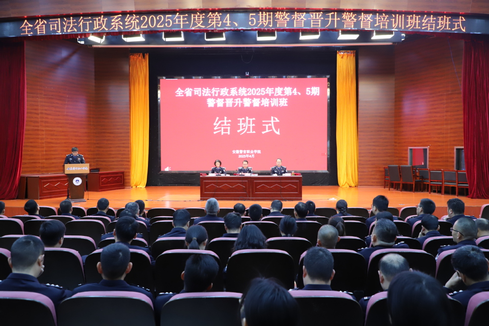 4月3日上午,全省司法行政系統2025年度第4、5期警督晉升警督培訓班結班式在安徽警官職業學院學術報告廳舉行。安徽警官職業學院繼續教育學院院長許起鵬,警訓科人員、培訓班全體學員參加儀式。