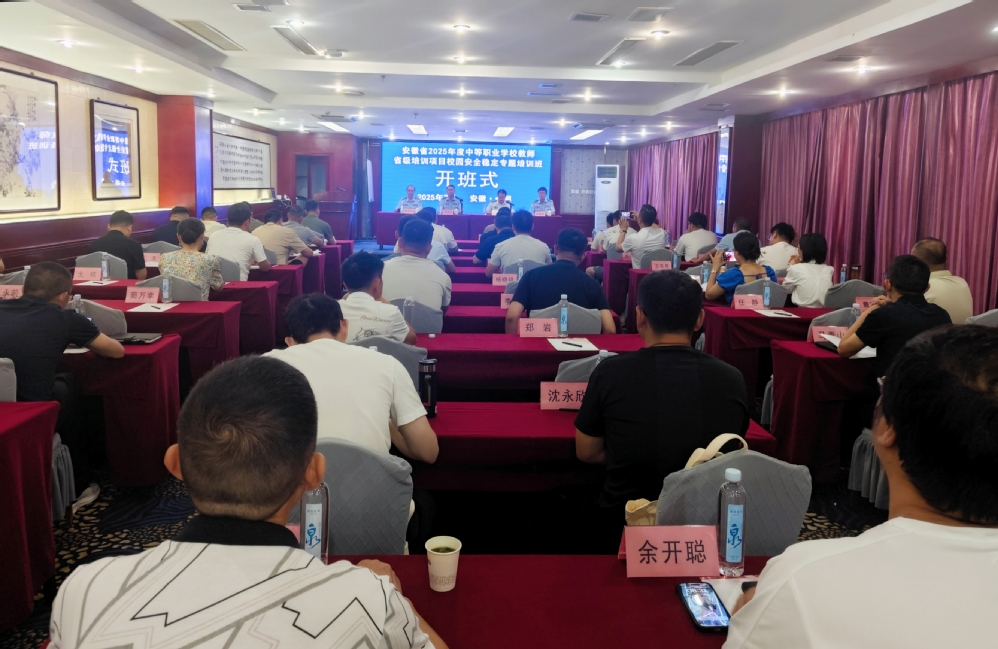 7月7日上午,由我院承辦的安徽省2025年度中等職業學校教師省級培訓項目——校園安全穩定專題培訓班正式開班。學院黨委副書記劉紹云出席開班式并作開班動員。學院繼續教育學院院長主持開班儀式,繼續教育學院副院長、社會培訓科全體同志以及本期培訓班全體學員參加了開班式。