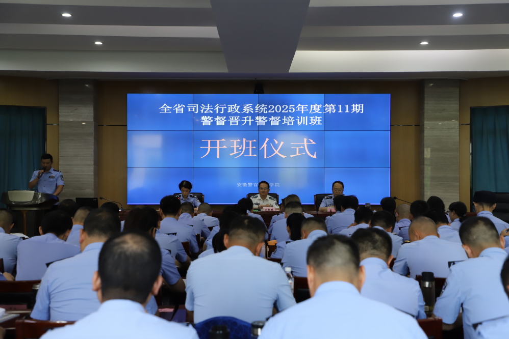 7月23日上午,全省司法行政系統2025年度第11期警督晉升警督培訓班開班儀式在警官學院繼續教育學院多功能廳教室舉行。繼續教育學院院長作開班動員講話,警訓科工作人員、培訓班全體學員參加儀式。