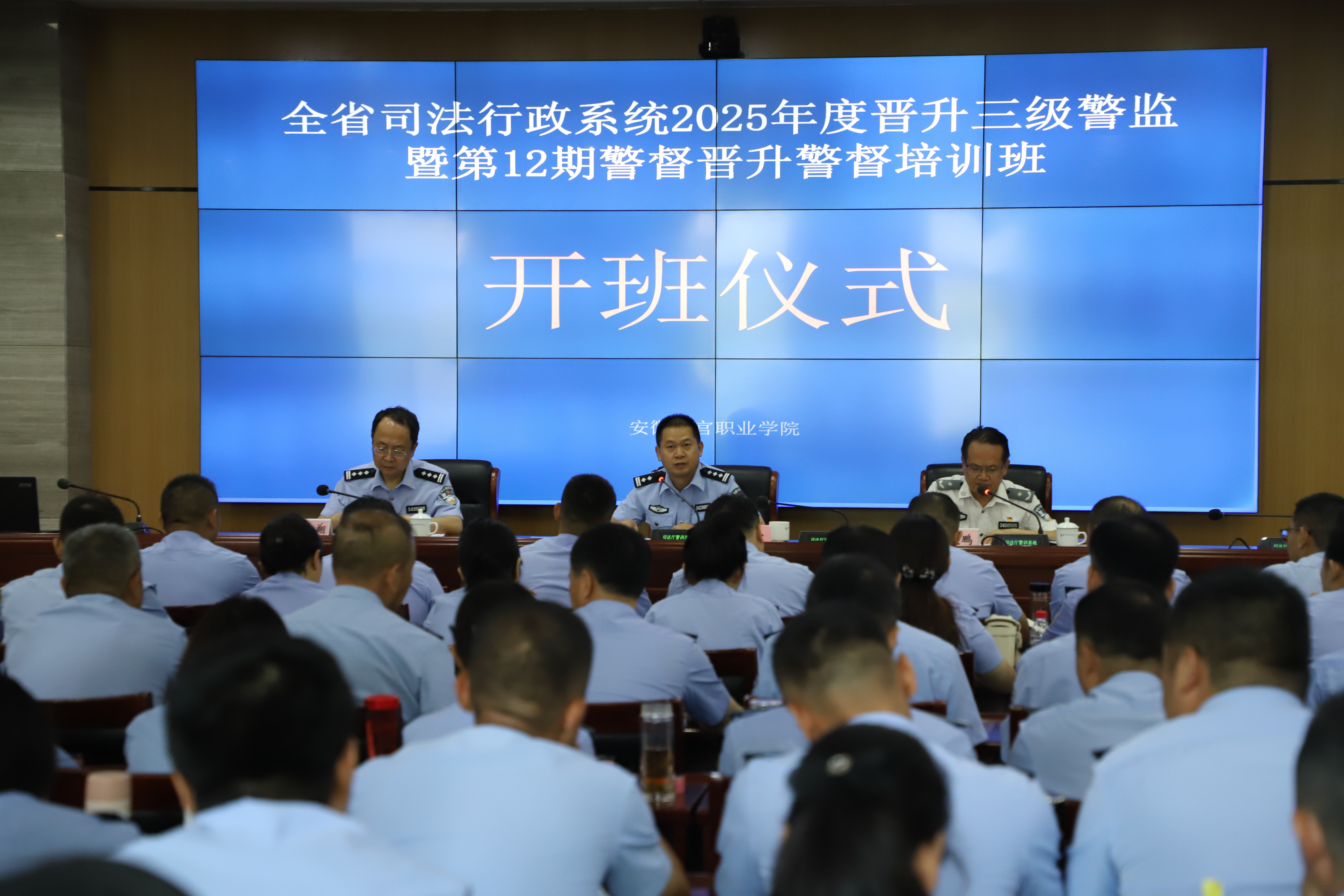 8月5日上午,全省司法行政系統(tǒng)2025年度晉升三級警監(jiān)暨第12期警督晉升警督培訓(xùn)班開班儀式在警官學(xué)院繼續(xù)教育學(xué)院多功能廳教室舉行。學(xué)院黨委副書記劉紹云出席并講話,繼續(xù)教育學(xué)院負(fù)責(zé)人、培訓(xùn)班全體學(xué)員參加儀式。
