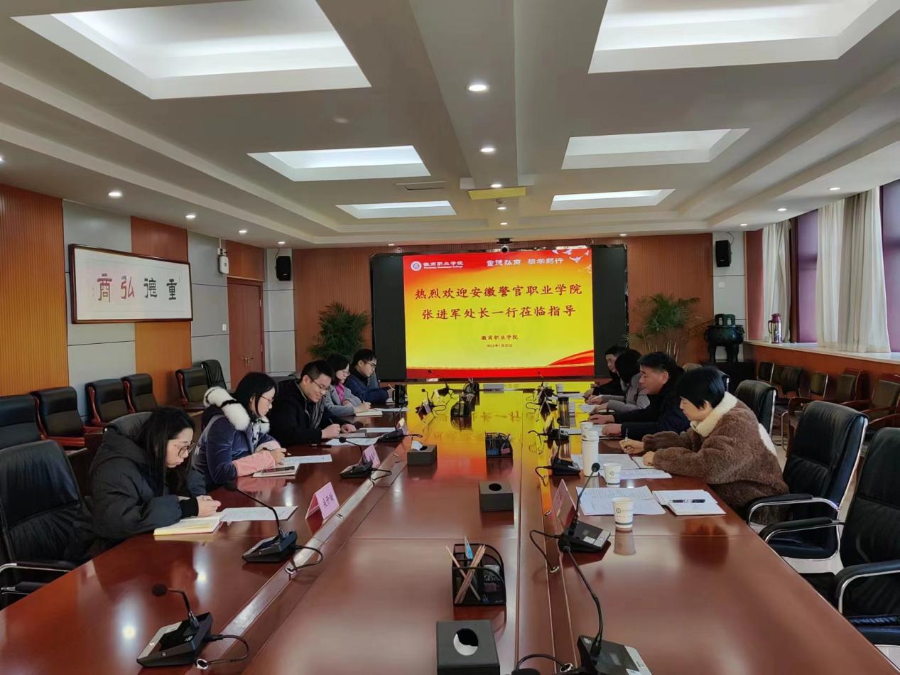 1月25日下午,學(xué)院人事警務(wù)處赴徽商職業(yè)學(xué)院開展學(xué)習(xí)調(diào)研,徽商職業(yè)學(xué)院組織人事處主要負(fù)責(zé)人陸培中熱情接待了張進(jìn)軍一行,該校組織人事處相關(guān)人員參加座談。