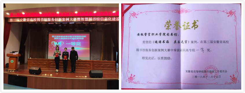 2018年12月13日至15日,由安徽省高等學(xué)校圖書館情報工作委員會主辦,安徽醫(yī)科大學(xué)圖書館承辦的第三屆安徽省高校圖書館服務(wù)創(chuàng)新案例大賽在安徽醫(yī)科大學(xué)舉行。我院圖書館申報的《遨游書海其樂無窮》案例榮獲此次大賽高職高專組一等獎。