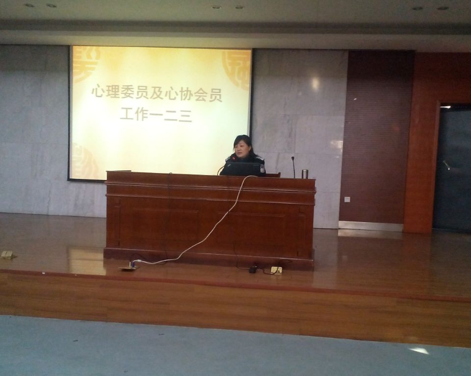 昨天下午,在院模擬法庭進行了院各班級心理委員及學生心理健康協會的專題培訓講座。講座以《班級心理委員和學生心理健康社團工作一二三》為題,對我院13、14級近90個班級心理委員以及學生心理健康社團近80人進行了專題培訓。培訓主題主要有兩個任務。一是建立我院學生心理健康教育的班級心理委員以及學生心理健康社團為主體的寢室、班級、院級三級聯絡表,做到專人負責,專業培訓;二是對心理委員以及學生心理健康社團的相關工作的原理、工作對象以及工作原則、工作任務等做了一一介紹。與會同學紛紛表示:充分認識到自身工作的重要性,今后要做好學生的心理健康服務工作,當好學生的貼心人和心理健康老師的左膀右臂。
