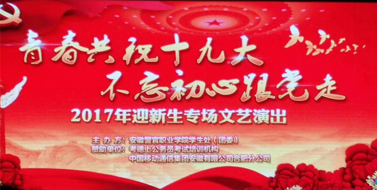 為認真貫徹落實《共青團中央關于在全團開展“青春喜迎十九大 不忘初心跟黨走”主題宣傳教育工作的通知》的文件要求,團結引領學院廣大青年以奮發(fā)向上的精神狀態(tài)慶祝黨的十九大勝利召開,以高度的思想和行動自覺貫徹黨的十九大。10月20日晚,“青春共筑十九大 不忘初心跟黨走”新生專場文藝晚會在我院西區(qū)運動場舉行,院黨委副書記胡愛國,院長助理、院黨委委員周善來蒞臨本次晚會現(xiàn)場。各相關部門領導和全體學管人員出席了此次晚會,2017級全體新生觀看了表演。