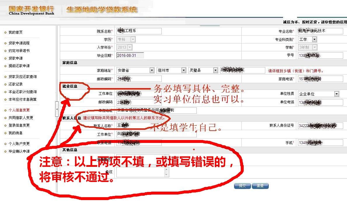 (3)變更信息確認。學(xué)生若有學(xué)制延長、專升本、個人重要信息變更等情況,請登錄國家開發(fā)銀行學(xué)生在線系統(tǒng)進行信息變更,并及時到生源地所在地助學(xué)貸款機構(gòu)辦理續(xù)貸手續(xù)。