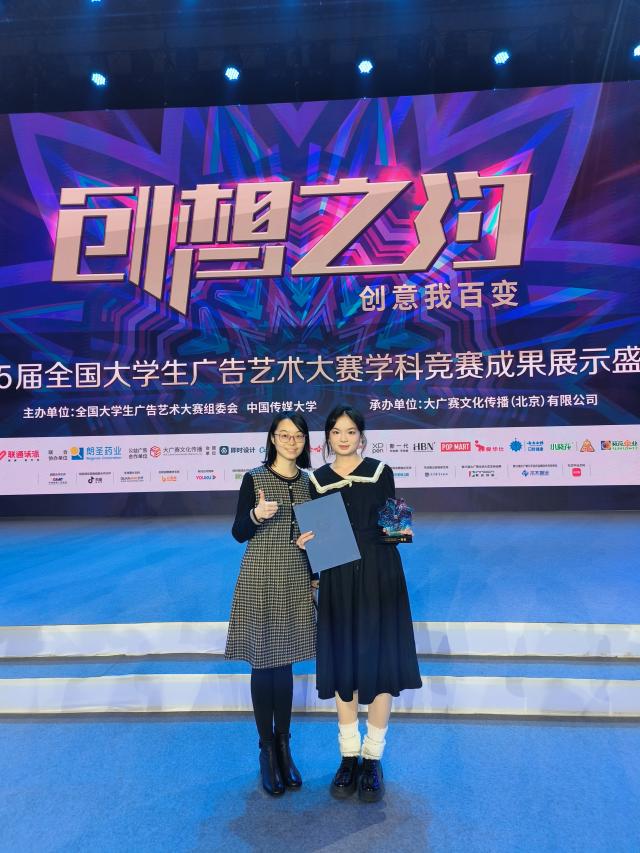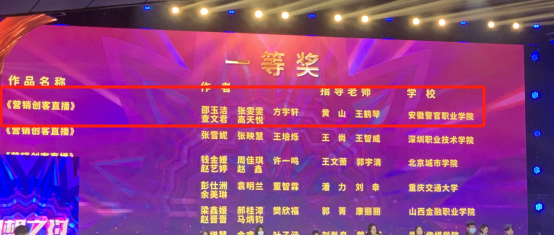 11月25日,全國第十五屆大廣賽學科競賽成果展示盛典在中國傳媒大學舉行,在此次賽事中,我院學子憑借出色的創意和技能,榮獲營銷創客直播賽道國家級一等獎。學院師生代表隊受邀赴現場參加此次盛典。
