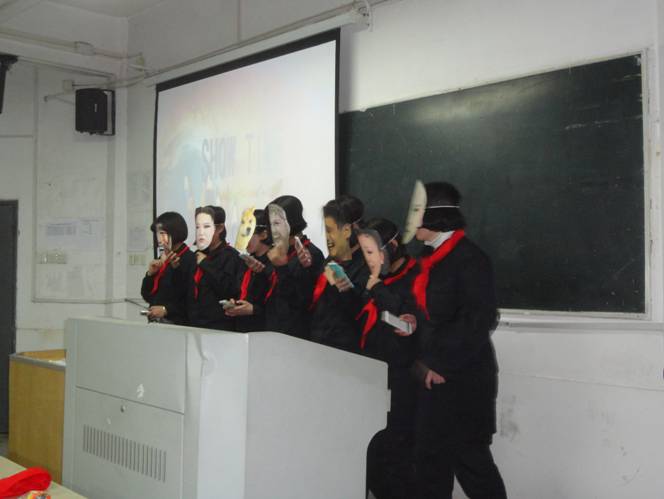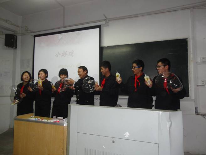 緊接著同學們又一起回憶了小時候經常吃的食品,開心地品嘗。接著團支書安排“踢毽子、抽陀螺、吹泡泡、夾氣球比賽......”。楊總為贏得小比賽的同學頒獎并合影留念。6幢女生101寢室為大家表演《戴著面具朗誦滑板鞋》。楊總再次走上講臺為大家講解了“警院后勤”微信公眾號,列舉出了公眾號的作用,寢室項目報修,對食堂飯菜的建議,校園一卡通的使用,失物招領等功能......他還與同學們使用微信搖一搖建群功能建立了微信群,并發了紅包為大家助興。全場氣氛也被推向了高潮!!