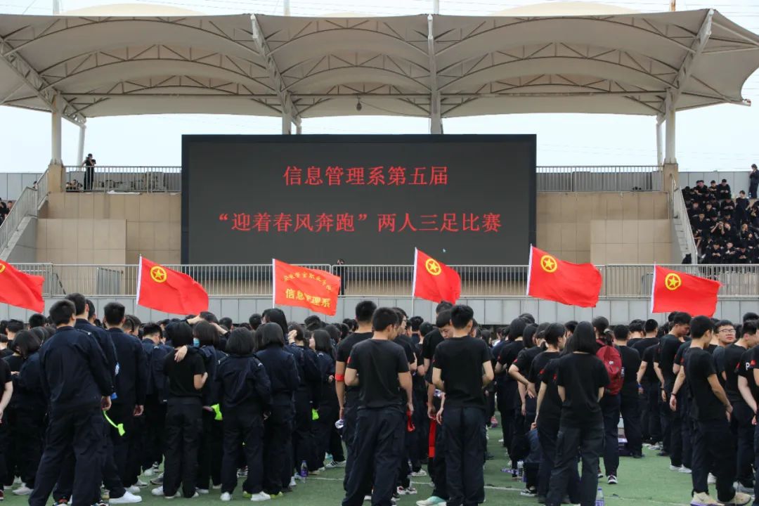 5月18日下午,信息管理系在大操場舉行第五屆“迎著春風奔跑”活動,系全體學管老師及班主任同1600余名學生共同參與此次活動,32支隊伍參賽。每隊30名學生手拉手,肩并肩,兩人三足,齊頭并進,奔向終點。經過近兩個小時多輪緊張激烈的角逐,6支隊伍分年級決出了比賽名次。