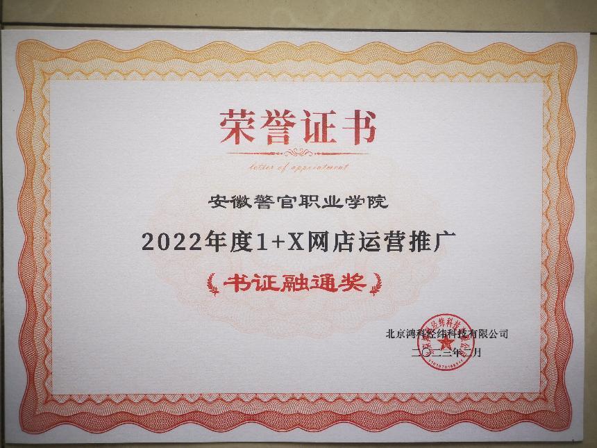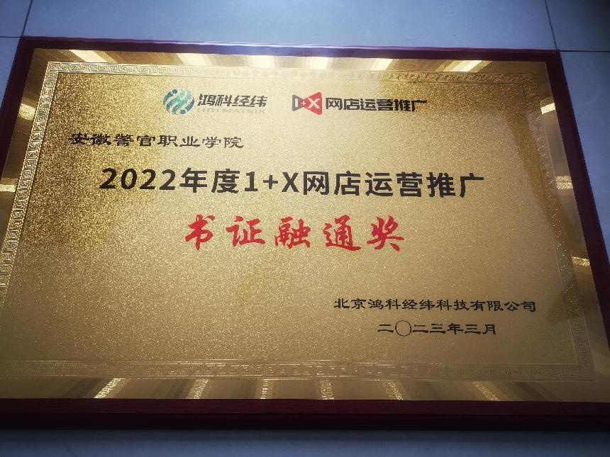 在剛剛結束的2022年度全國1+X網店運營推廣證書試點工作總結大會上,安徽警官職業學院獲得2022年度1+X網店運營推廣證書試點工作“書證融通獎”。