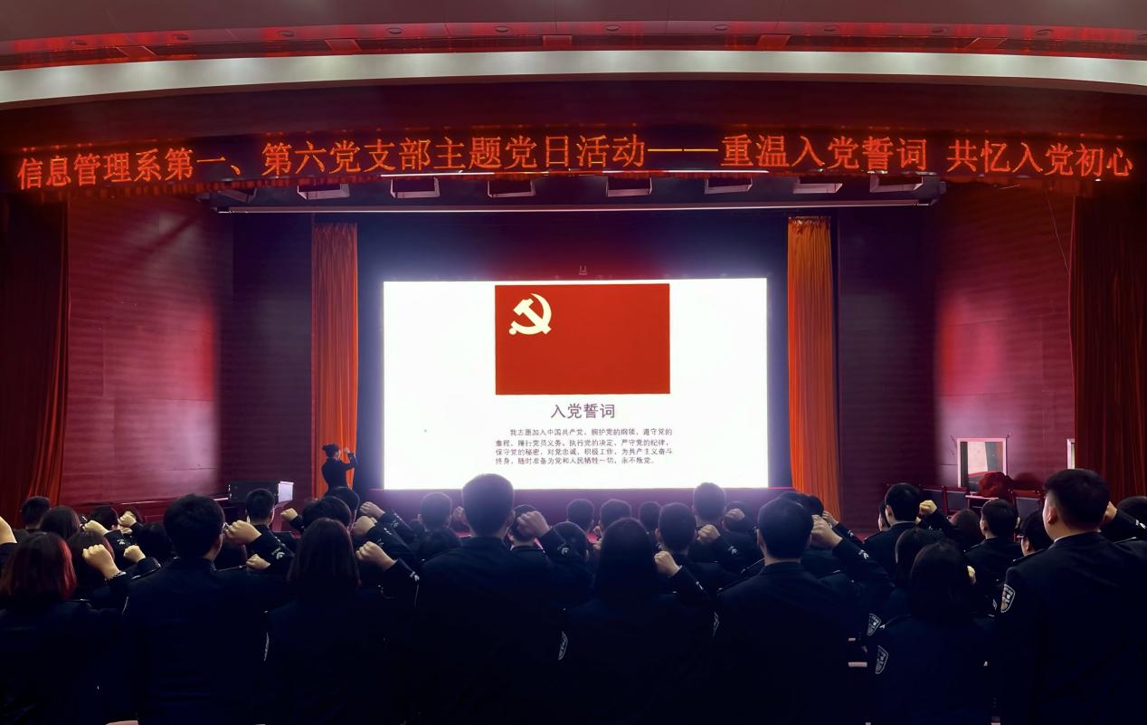 2024年12月18日上午,信息管理系第一、第六黨支部在學術報告廳舉行“重溫入黨誓詞 共憶入黨初心”主題黨日活動,全體師生黨員參加活動。