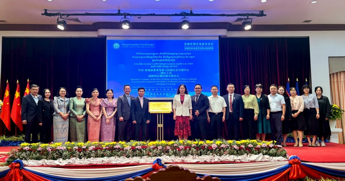 9月3日,由安徽省職業教育國際發展聯盟和柬埔寨勞工與職業培訓部共同舉辦的“中國—柬埔寨職業發展與技能認證卓越中心——徽匠工坊”首期電子商務職業培訓在柬埔寨首都金邊正式啟動,學院黨委副書記劉紹云率隊前往開展培訓工作,為首批柬埔寨學員提供系統化、高質量的技能培訓。柬埔寨勞工與職業培訓部國務秘書Chea Kosal、安徽省職業教育國際發展聯盟秘書長凌雙英及柬埔寨技術與農業學院院長Van Davith等出席啟動儀式。